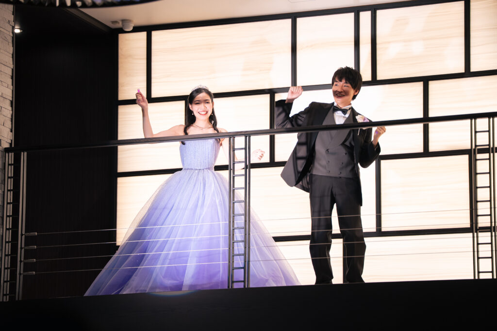 写真をいっぱい撮る時間を設けたり、お色直しで階段入場の際は階段の上でふたりで踊ったり、