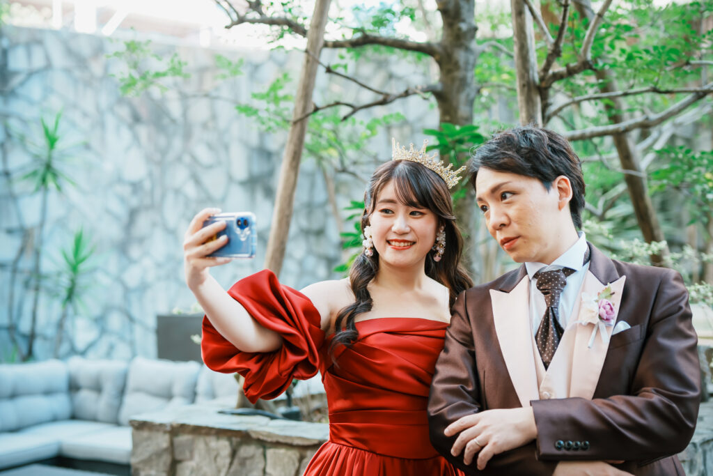 披露宴会場には、プライベートガーデンが付いてたのでガーデンで写真を撮る時間を設けたりブッフェを行いました。