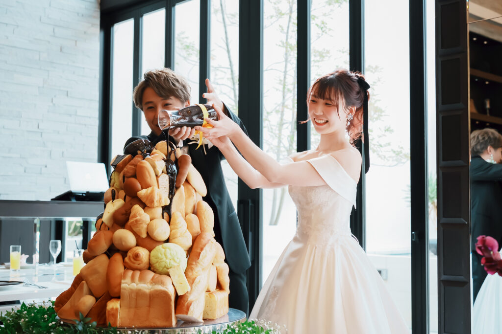 その中でも特にこだわったのが、ケーキの代わりに用意した“パンタワー”の演出です。